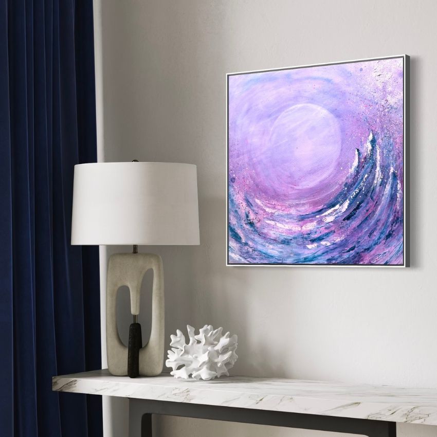 Meine abstrakten Acrylbilder sind in unterschiedlichen Größen entweder auf Leinwand, Leinwandkarton oder Acrylpapier gefertigt. Wenn du wissen möchtest, wie die Bilder im Raum aufgehängt aussehen könnten, dann schau dich gerne um. Es gibt viele Details zu entdecken. Außerdem erfährst du, welche originale Kunst noch für dich verfügbar wäre.